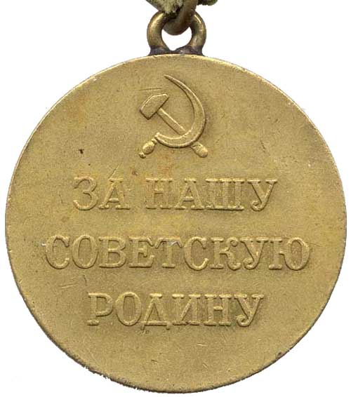 На оборотной стороне медали надпись в три строки "ЗА НАШУ СОВЕТСКУЮ РОДИНУ"
