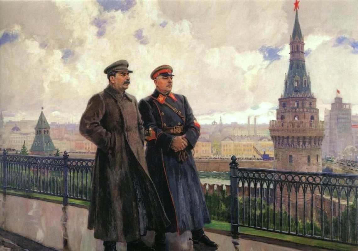 Это был заказ, и сам художник впоследствии вспоминал: «В плане заказа для этой выставки я мог писать И.В. Сталина в окружении его ближайших друзей и соратников, но я решил писать только И.В. Сталина и К.Е. Ворошилова, потому что для меня писать с фотографий, не видя людей, невозможно: фотография никогда полно не передает лица. Чтобы писать хорошо, нужно знать человека, чтобы он был у вас в зрительной памяти. Я имел высокую честь близко видеть И.В. Сталина несколько раз, разговаривать с ним; а К.Е. Ворошилова писал несколько раз с натуры».