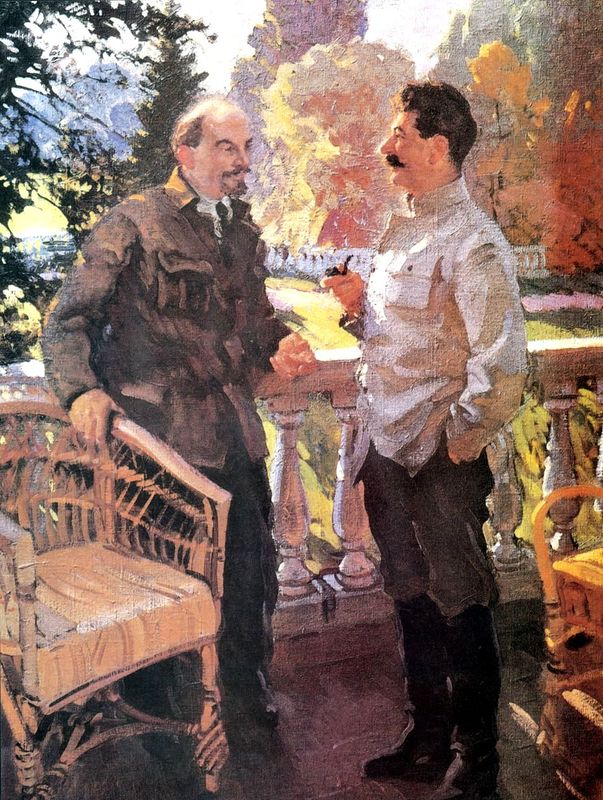 В. И. Ленин и И. В. Сталин в Горках в 1923 году
