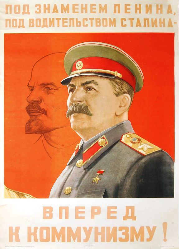 Под знаменем Ленина, под водительством Сталина — вперёд, к коммунизму!