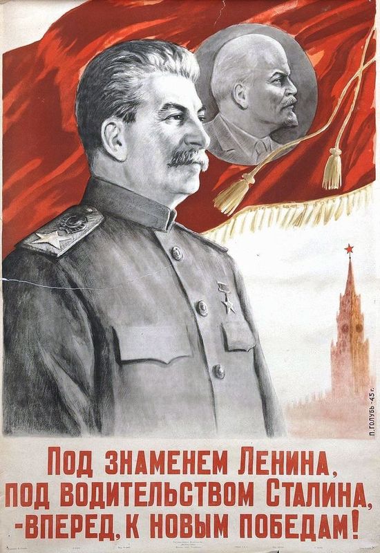Под знаменем Ленина, под водительством Сталина, — вперёд, к новым победам!