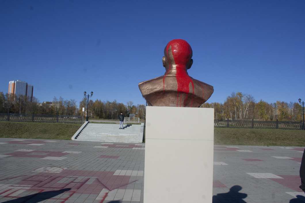На следующий день праздник немного испортился. Начальник управления информационной политики администрации Сургута Екатерина Швидкая заявила, что бюст установлен незаконно и, скорее всего, по суду будет снесен. Неизвестные дважды облили памятник красной краской и один раз написали на постаменте: «Палач». Первый раз краску смыли сразу (кто, тоже неизвестно), так что только между золотых букв остались алые разводы. Второй раз хозяева памятника спохватились поздно.