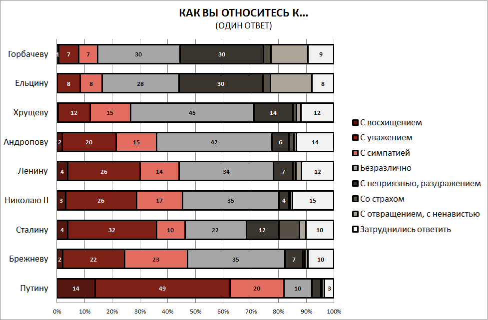 1,5% для показателей, близких к 5% / 95% КАК ВЫ ЛИЧНО В ЦЕЛОМ ОТНОСИТЕСЬ К СТАЛИНУ? (один ответ)