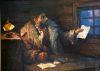 В. И. Ленин и И. В. Сталин в рабочем кабинете в Кремле беседуют с крестьянами