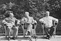 2017.07.29 Участники Потсдамской конференции глав правительств главных держав-победительниц во второй мировой войне (слева направо): премьер-министр Великобритании Уинстон Черчилль, президент США Гарри Труман, Иосиф Сталин