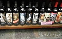 2017.07.30 Нацистский преступник Гитлер и фашистский преступник Муссолини на бутылках вина в открытой продаже. Специальный отбор вина в магазине. Италия